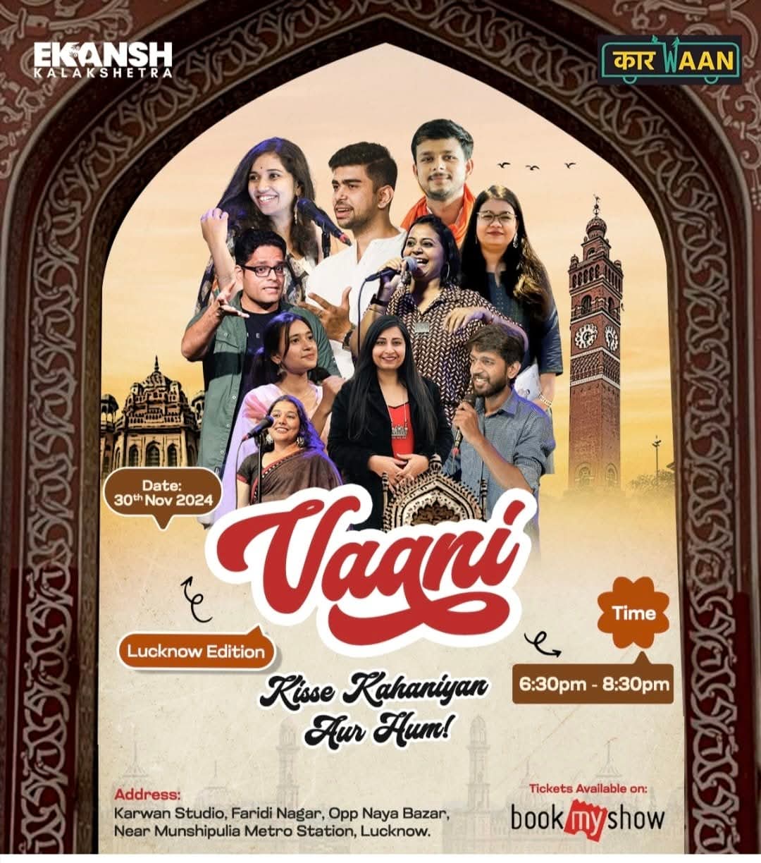 Ekansh Kalakshetra presents the first Lucknow edition of Vaani: Kisse, Kahaniya aur Hum, a show brought to life by Ekansh Kalakshetra Productions. In this unique blend of stories and acting, the storytellers touch topics ranging from love, trauma, social issues, relationships, dreams to mention a few. So Join us for this superlative experience.