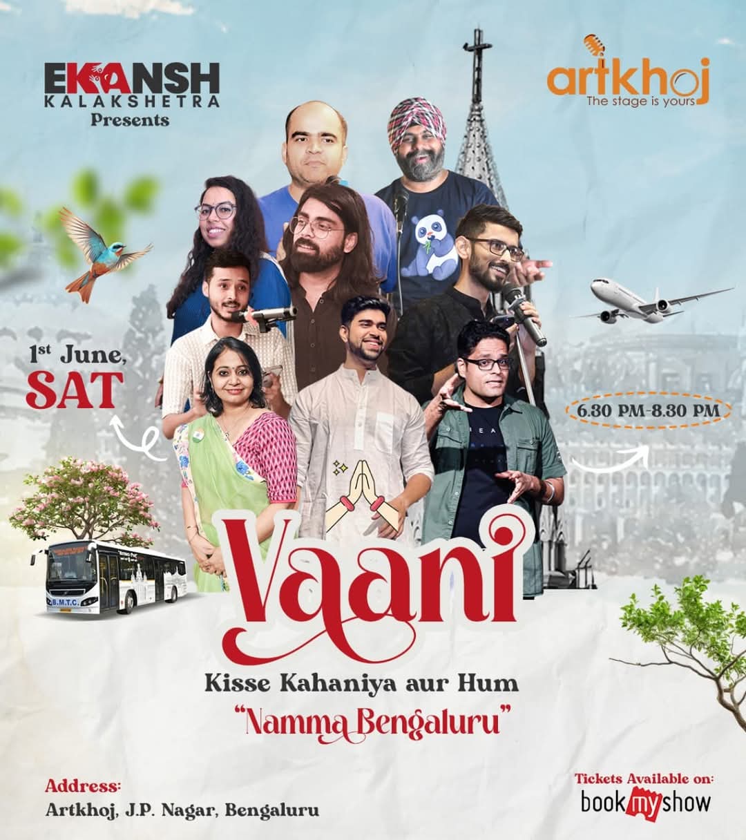 The 7th edition of Vaani: Kisse, Kahaniya aur Hum, a show brought to life by Ekansh Kalakshetra Productions goes out of Mumbai for the very time. Promising a superhit evening in Bengaluru, the show shall witness a blend of Mumbai and Bengaluru storytellers sharing their life experiences with the audience. Do Join us for the show on 1st June in Bengaluru .