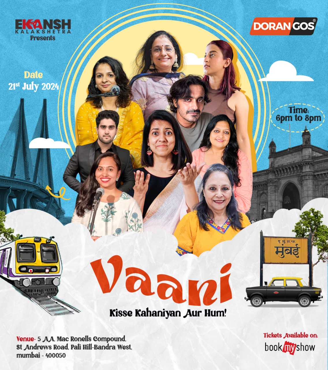 The 8th edition of Vaani: Kisse, Kahaniya aur Hum, a show brought to life by Ekansh Kalakshetra Productions, is going to be special for many reasons. Not only does show bring together the finest storytellers from Mumbai but also promises the audience a theatrical storytelling experience. Join us for the show on 21st July .